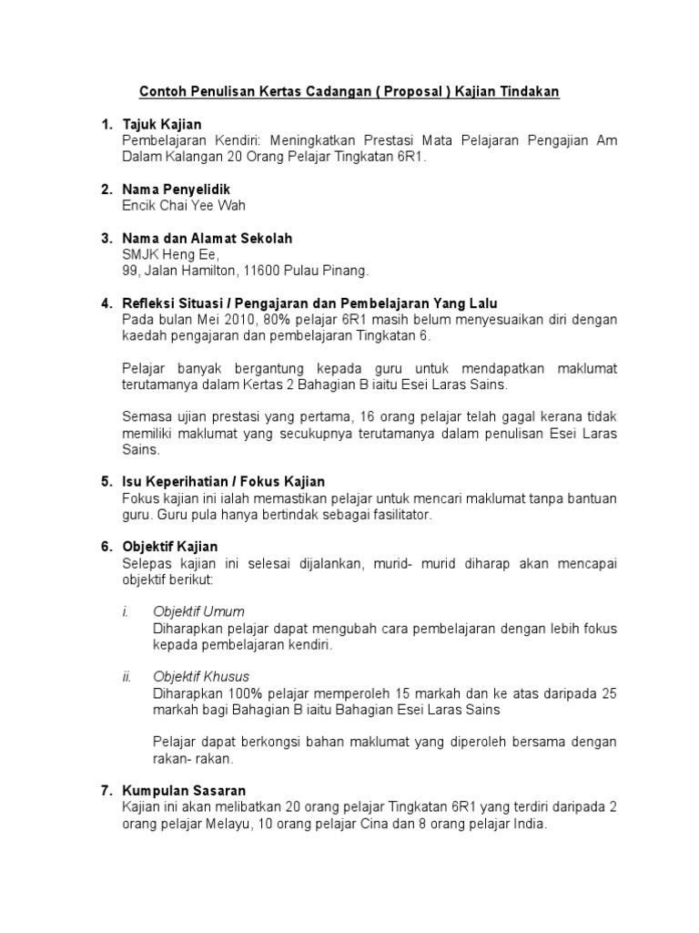 Contoh Penulisan Kertas Cadangan Kajian Tindakan Pdf